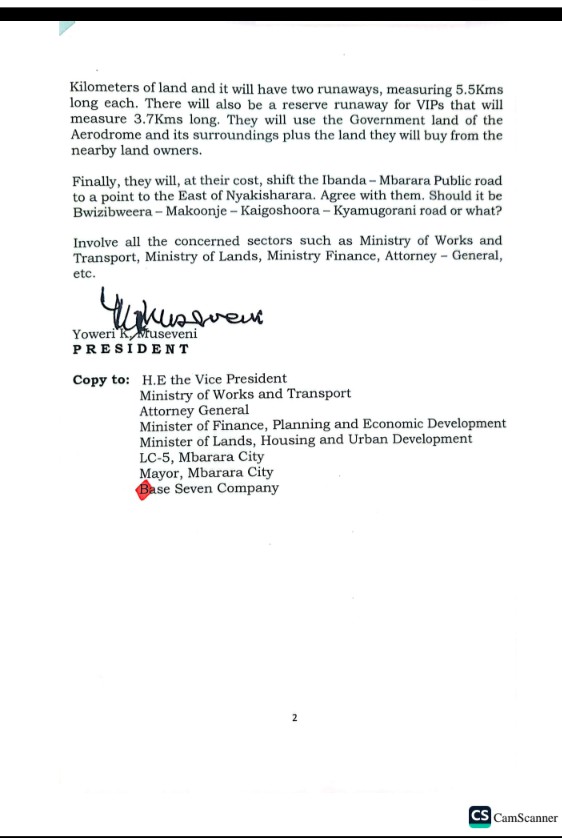 The project will also see the existing Mbarara Ibanda road via Bwizibwera relocated with the president proposing the Mbarara-Keigoshora-Bwizibwera route all done at the expense of the developer.